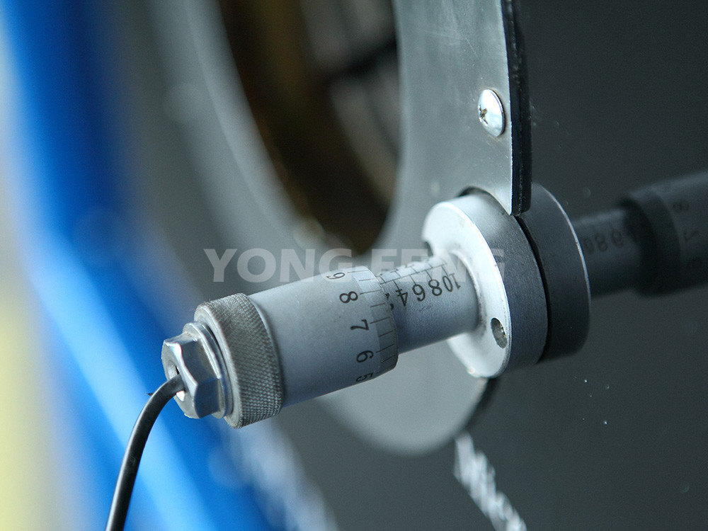 6. 取出扣压好的胶管总成,用游标卡尺检测扣压后的接头外套外径尺寸,如与参数表不符应微调千分尺刻度,直到下一根胶管扣压符合要求为止。