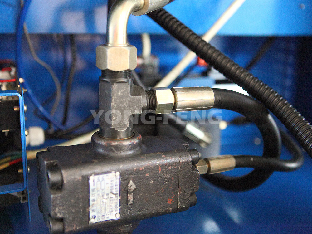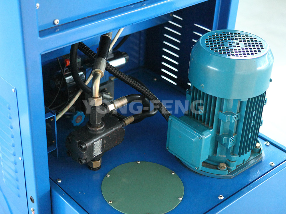 2、液压系统由电 机、油泵、电磁阀、调压阀及液压阀组成了具有进退运动的双液压油路,而且在双液压油路中还增加离一个快速泄油阀油路,以达到更加快速 回位的目的,且速度可调、噪音和系统压力降低。