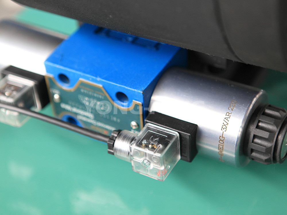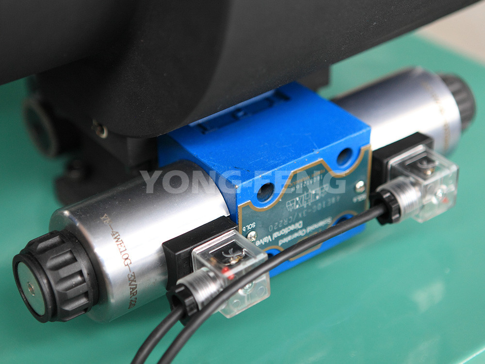 2、液压系统由电 机、油泵、电磁阀、调压阀及液压阀组成了具有进退运动的双液压油路,而且在双液压油路中还增加离一个快速泄油阀油路,以达到更加快速 回位的目的,且速度可调、噪音和系统压力降低。